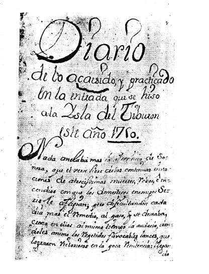 El Gobernador y Capitán General interino de las Provincias de Sinaloa, Ostimuri y Sonora, Don Diego Ortiz Parrilla, condujo la primera expedición armada a la isla con el objetivo de apoderarse de ella y desplazar a la nación seri. Entre capitanes y soldados, los acompañaban también un grupo numeroso de pimas y el jesuita Francisco Antonio Pimental. Este último escribió un diario en donde relata todos los pormenores de la expedición, el cual tituló: Diario de lo acaecido y practicado en la entrada que se hizo a la isla del tiburón, este año 1750. Al final del texto, incluyó un largo romance formado por octasílabos.